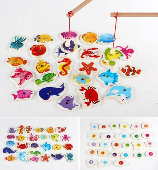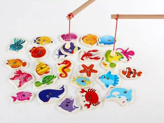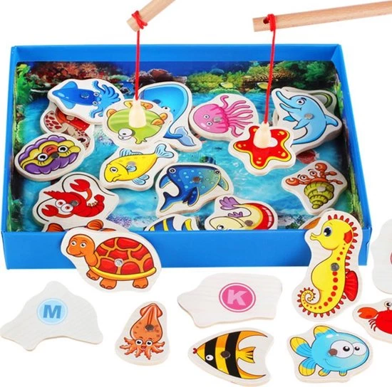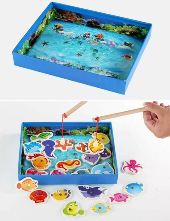 Denk je dat de vissen vandaag willen bijten? Dat is de grote vraag in dit leuke houten hengelspel! Het is aan jou om met behulp van de hengel zo veel mogelijk vissen te vangen. Ben jij de snelste visser?