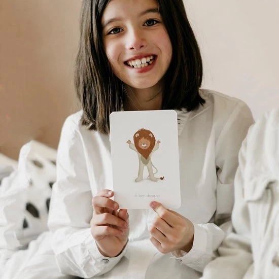 Gebruik deze vrolijke kaarten om kinderen van jongs af aan te helpen met een positief zelfbeeld en een fijne kijk op de wereld. Leer samen met de affirmation kaarten alles over eigenwaarde, zelfvertrouwen en respect naar anderen.