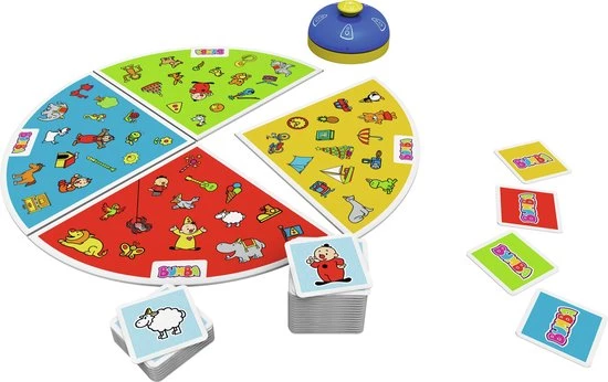 Ga samen met Bumba en zijn vriendjes op zoek naar de identieke voorwerpen of figuren en win zoveel mogelijk kaartjes. Wie als eerste op de taartdelen hetzelfde voorwerp ziet dat op het kaartje staat, drukt op het Bumba-belletje! Ting! Gevonden! Dit spel groeit mee met je oogappeltje en scherpt het opmerkingsvermogen aan.