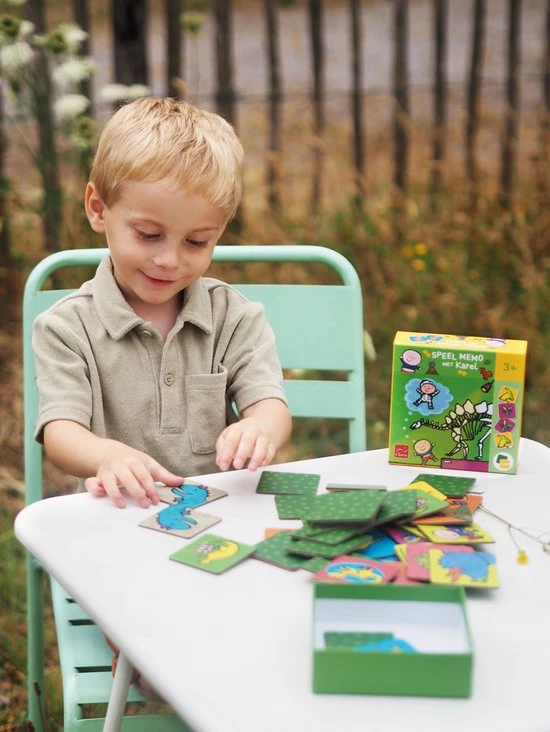 In de opvang, in de klas, of gewoon lekker thuis: draai samen met Karel de juiste dinokaartjes om.