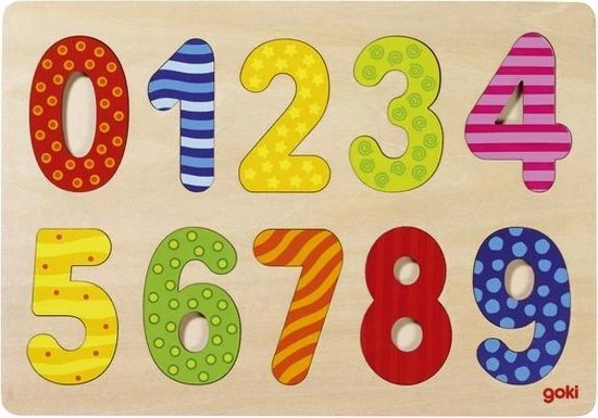 Puzzel met alle cijfers van 0-9 in 10 verschillende motieven en kleurtjes.