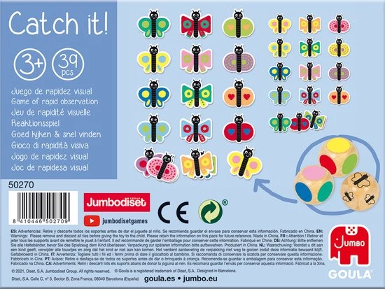 Catch it! Butterflies is een dobbelspel van Goula voor kinderen vanaf 3 jaar dat de visuele snelheid ontwikkelt.
