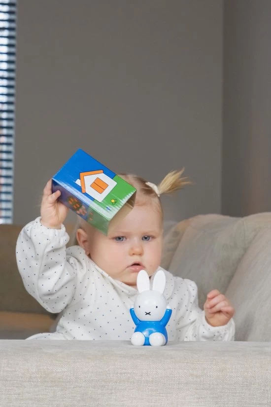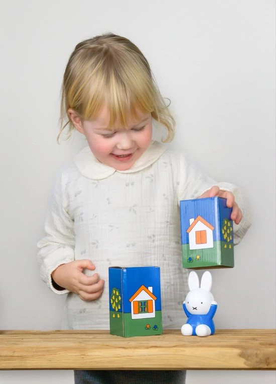 Wil je het spel moeilijker maken? Dek nijntje af en zet er een huisje naast. Al luisterend raadt je kind onder welk huisje nijntje verstopt zit. Nog moeilijker maken? Voeg een derde huisje toe en hussel de huisjes. Weet je kind nu nog waar nijntje verstopt zit?
