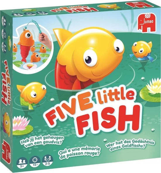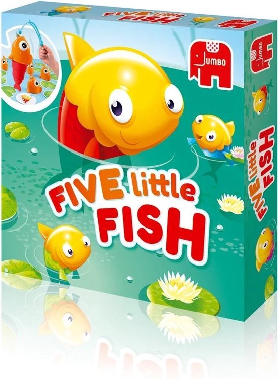 Jumbo Five Little Fish is het leukste spel voor kleintjes vanaf 3 jaar, EXCLUSIEF bij bol.com! Met Jumbo Five Little Fish zwemmen in de vijver vissen van alle kleuren. Kijk onder de waterlelies welke vis je moet vangen! Maar deze lollige visjes houden je voor de gek. Ze verstoppen hun staart en wisselen van plaats: je moet goed opletten om de juiste vis te vangen! Een concentratie- en geheugenspel.