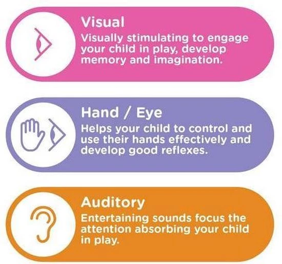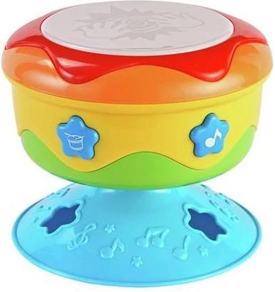 Deze kleurrijke draaitrommel is geweldig voor het stimuleren van de visuele zintuigen van uw kinderen, en helpt hen hun geheugen en verbeeldingskracht te ontwikkelen. Met een groot gebied aan de bovenkant en kleinere knoppen aan de zijkant is het perfect om de oog-handcoƶrdinatie, visuele en auditieve vaardigheden van uw kinderen te stimuleren, omdat de drum ook geluiden speelt en oplicht als ze erop slaan.