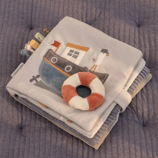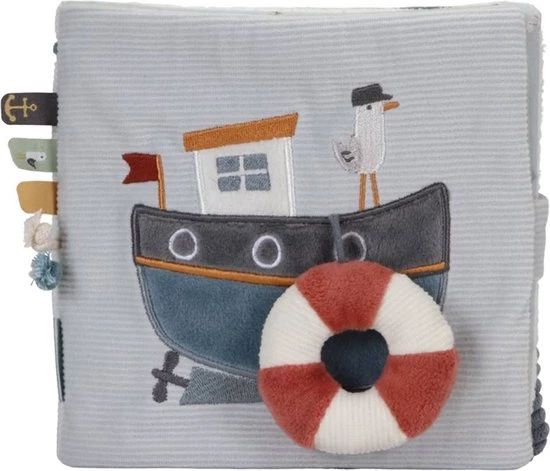 Met dit activiteitenboekje Sailors Bay beleeft je kindje veel plezier aan het ontdekken van de verschillende dieren, materialen en activiteiten in het babyboekje. Het boekje knispert, bevat een rammelaar, mini knuffeldier, verschillende labels om aan te voelen en een spiegel. Ideaal voor het prikkelen van de zintuigen en de ontwikkeling van de hand-oogcoördinatie.