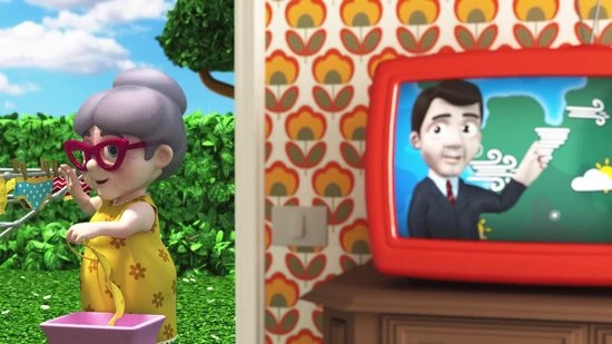 Kan jij oma helpen de was op te hangen? Gooi de dobbelsteen om de weersvoorspelling te zien!