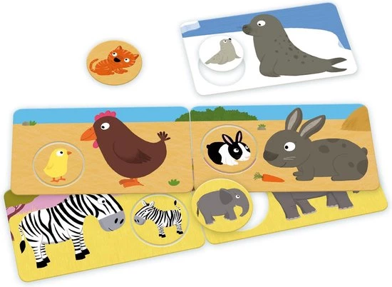 Een spel van associatie dat het mogelijk maakt om de emotionele relatie tussen moeder en baby in haar leefomgeving te benaderen. Een spel om te leren wie de baby van elk dier is. “Waar is de moeder van het kalf? “Wie is de baby van de merrie? “Het kind ontdekt de naam van elk dier en hun omgeving. Gemengd. Vanaf 3 jaar. Geleverd aan het apparaat.