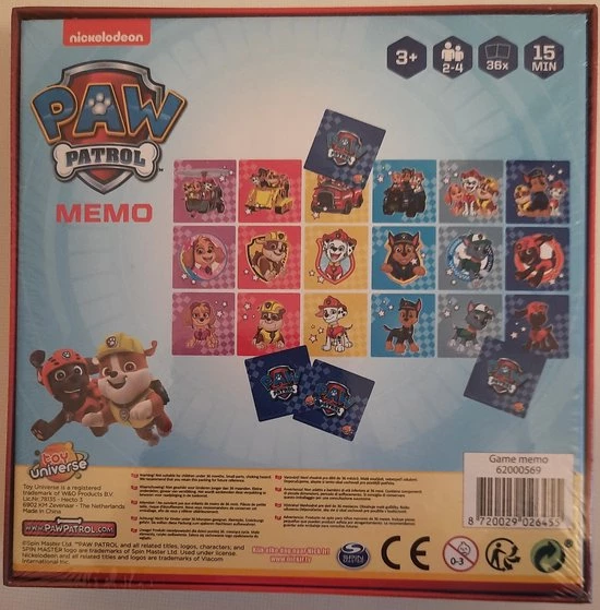 Draai twee kaarten om als je aan de beurt bent, als deze kaarten overeen komen mag je ze houden en nogmaals twee kaarten pakken. De speler die aan het eind van het spel de meeste paren heeft gevonden is de winnaar van deze superleuke Paw Patrol memo.