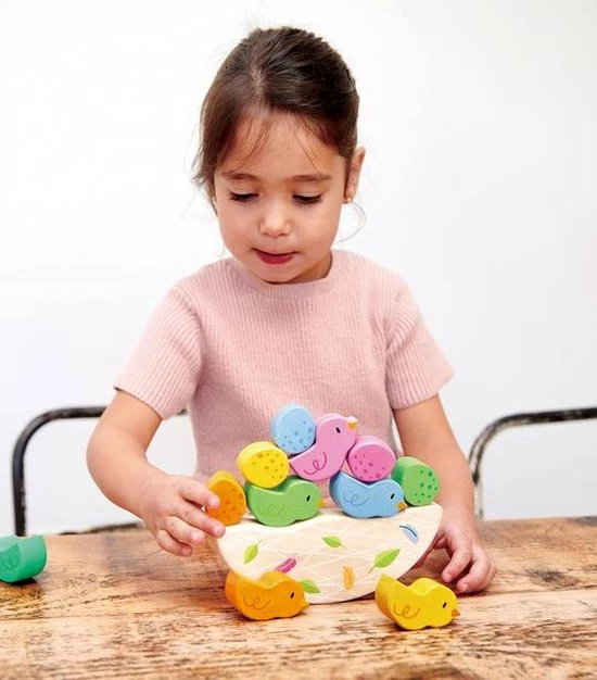 Een balansspel van Tender Toys ter bevordering van de fijne motoriek. Stapel de eitjes en baby vogeltjes in hun nestje. Maar pas goed op, zorg dat ze er niet uitvallen. Geweldig om de behendigheid van kinderen te trainen en bovendien een inspirerend fantasierijk spel!