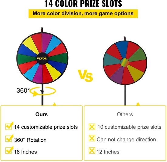 Onze 18/24 inch product heeft 14 aanpasbare slots en een 360-graden rotatie knop om uw behoeften te voldoen. Met 14 aanpasbare prijs slots voor tekst of logo, kunt u uw games of promoties.
